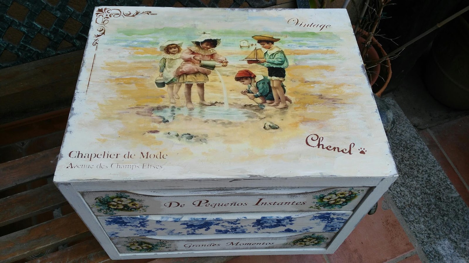 Costurero con mucha capacidad y con un aire envejecido viéndolo al natural queda precioso espero que quien me lo encargó este contenta con mi trabajo